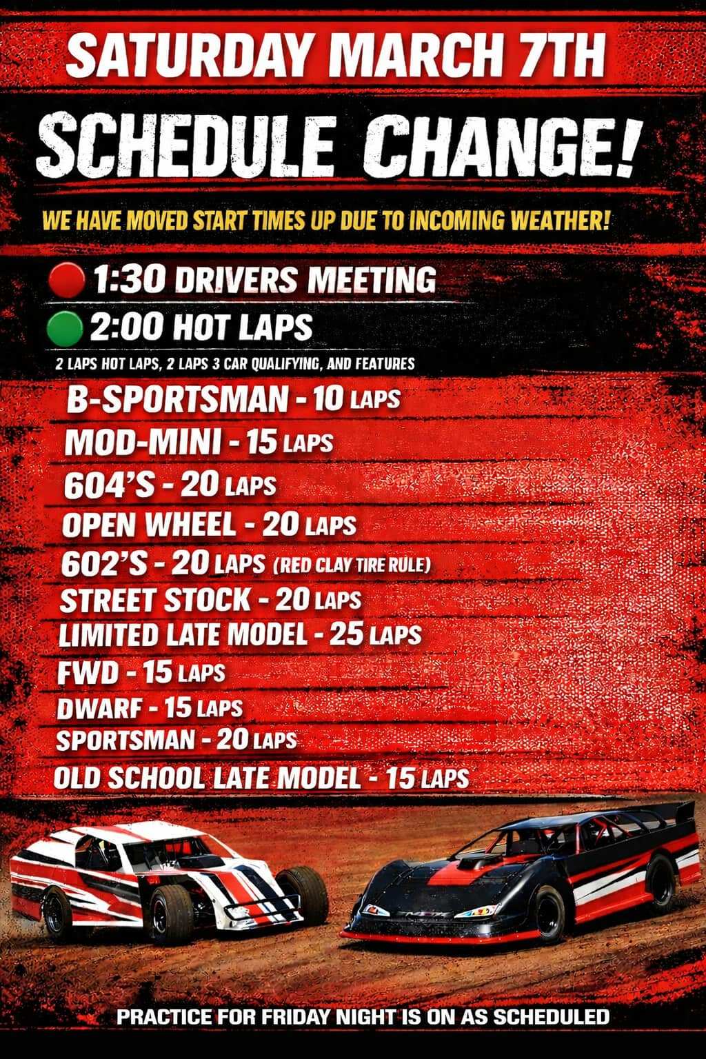 Adjusted Start Times for Saturday’s Season Opener at I-75 Raceway