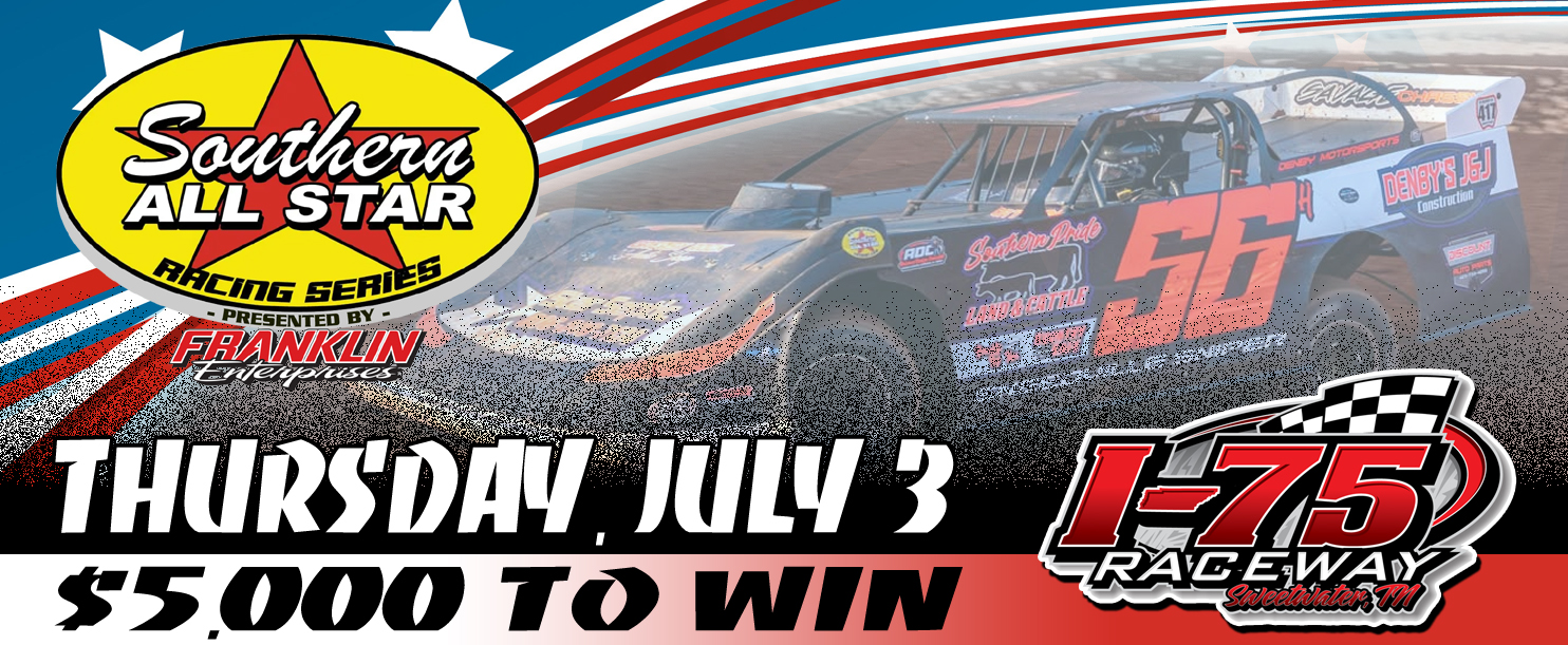 Read More: Southern All Stars Invades I-75 Raceway on Thursday, July 3 Plus Fireworks!June 30, 2025 — For the first time since the season opener back on February 1, the Southern All Star Dirt Racing Series presented by Franklin Enterprises will be in the Volunteer State over the upcoming Independence Day weekend! A pair of SAS events will be held on Thursday night, July 3 at I-75 Raceway…